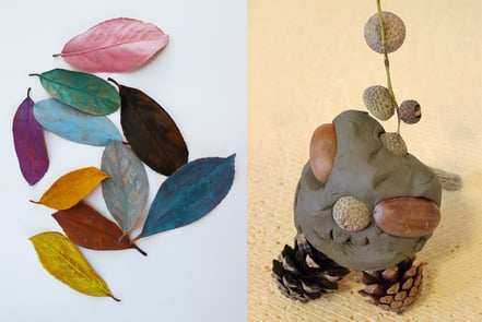 Wir malen mit Goldgelb bis Kastanienbraun – und basteln Fantasieobjekte aus Tonerde und Materialen, welche die Natur im Herbst hergibt.