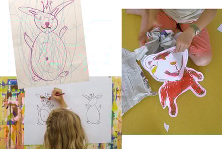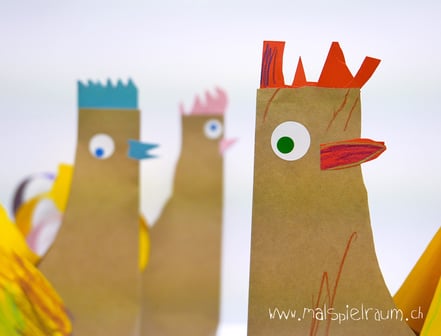 Wir malen, basteln und gestalten bunte Hühner und lustige Osterhasen: Taschen, Handpuppen und was uns sonst noch alles einfallen wird...